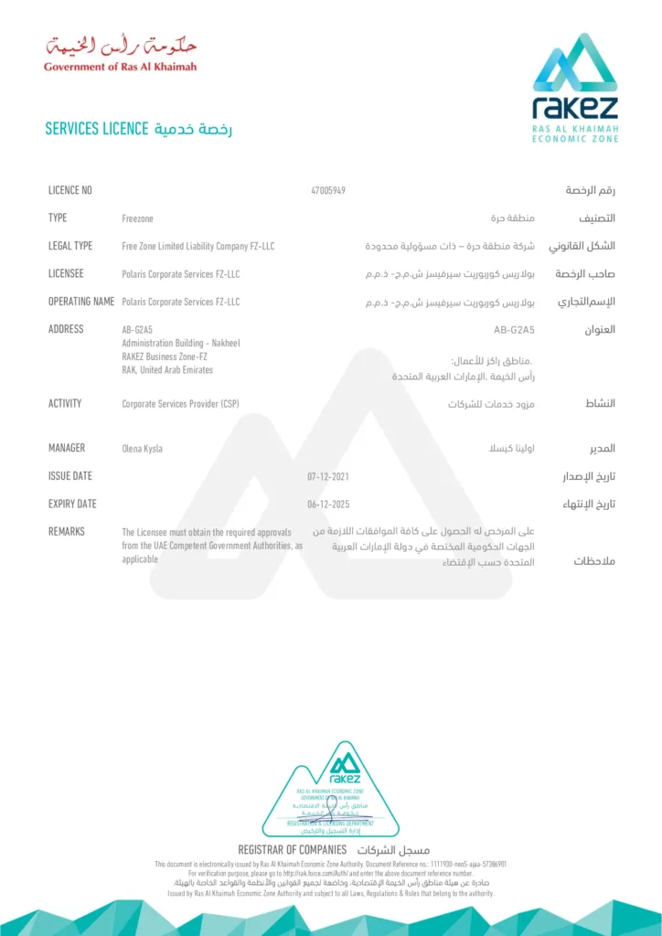 - Selected one of the economic zones in the UAE where the client gets 100% ownership