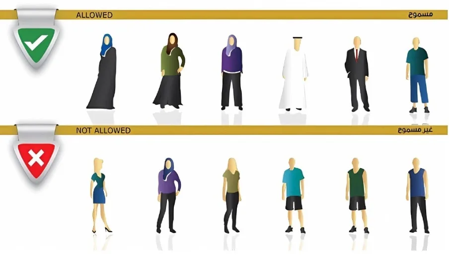 ● Общественные зоны и консервативные области: В этих секторах городской жизни приоритет отдается скромности в одежде. Недопустимым является ношение одежды с прозрачными элементами или слишком откровенных ансамблей.